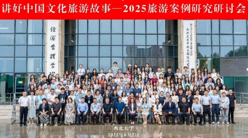 6月7日,“讲好中国文化旅游故事——2025旅游案例研究研讨会”在西北大学长安校区成功举行。本次案例研究研讨会由《旅游学刊》编辑部和西北大学主办,776net必赢官网、西北大学中国西部经济发展研究院、西北大学中国文化和旅游融合研究中心承办,西安外国语大学旅游学院、北京第二外国语学院旅游科学学院协办,陕西旅游研究院、陕西旅游协会教育分会、成都威爱数矩科技有限公司支持。西北大学副校长曹蓉、北京联合大学旅游学院院长、《旅游学刊》主编严旭阳、陕西省旅游协会会长辛建伟出席会议并致辞;来自清华大学、中山大学、南开大学、对外经济贸易大学、北京联合大学、湖南师范大学、华南理工大学、华南师范大学、暨南大学、新疆大学、西南民族大学、西藏民族大学、四川师范大学、渤海大学、重庆理工大学、安徽大学、广西师范大学、吉首大学、陕西师范大学以及成都威爱数矩科技有限公司、陕西华清文化创意有限公司等全国高校和业界的百位专家、学者、企业代表师生代表参加本次研讨会。