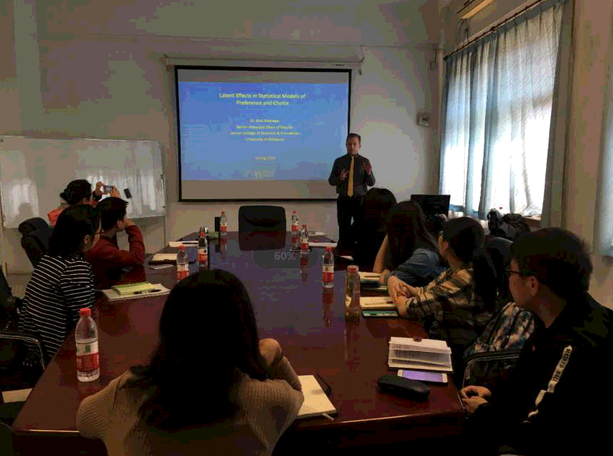 Rick Andrews教授的研究领域是市场营销、计量经济学和统计学,主要研究消费者偏好和选择建模、零售监测数据建模和分析、时间序列分析和预测、市场研究量化分析等具体问题。此次,他主讲的题目是:Latent Effects in Statistical Models of Preference and Choice。首先,他介绍了之前利用各种计量和统计模型在营销学顶级期刊上发表过的多篇学术论文,然后重点讲解了营销研究中的建模方法和思路,以及各种模型的优缺点和应用情境。最后,他还介绍了自己和研究团队正在进行的若干前沿研究选题,比如新浪微博等社交媒体的数据挖掘和建模等。讲座结束后,李纯青教授和在场的师生与Rick Andrews教授就超市扫描数据的获取、建模方法等相关具体问题做了进一步交流和探讨。此次沙龙不仅拓展了我院师生的学术研究视野,也在市场营销研究方法的多样化方面有了新的认识和启发。