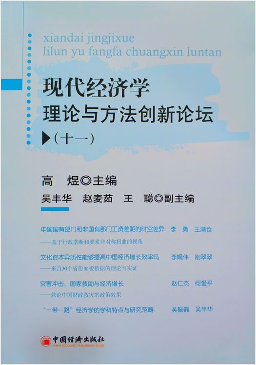 近日,由经济学系高煜教授主编,吴丰华副教授、赵麦茹副教授、王聪副教授副主编的《现代经济学理论与方法创新论坛(十一)》由中国经济出版社出版。该书是陕西省普通高等学校“一流专业”项目和西北大学“双一流”建设项目的支持成果。