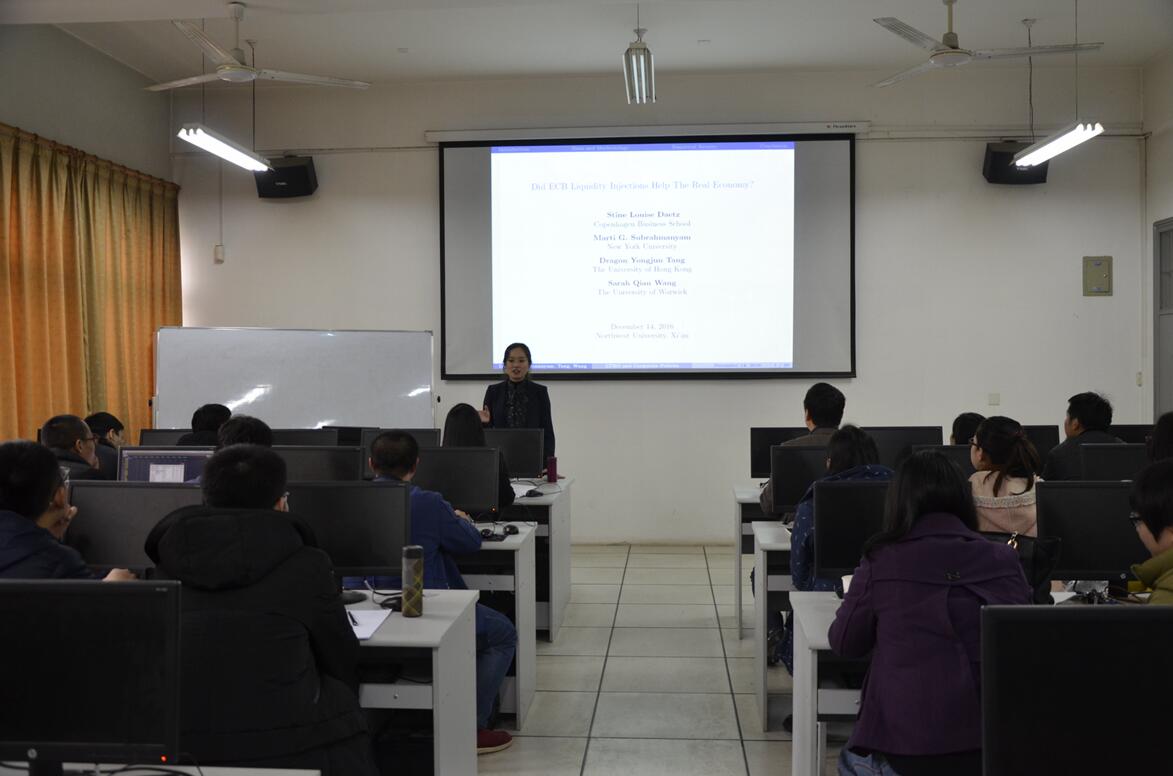 经济类教师学术沙龙2016年第4期(总第82期)于2016年12月14日下午在776net必赢官网长安校区8110教室举行。任教于英国华威大学的王倩博士应邀以《欧洲央行的流动性注入如何影响实体经济》为题,向参加活动的学院师生作了报告。本次沙龙由金融系副主任王峰虎副教授主持,金融系俞颖副教授点评,多名青年教师及我院部分硕士研究生参加了本次沙龙。