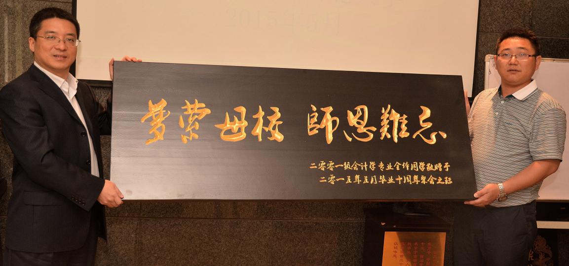 5月2日,我院2001级会计学专业40余名校友从全国各地重返母校,开展了纪念毕业10周年活动。期间,开展了师生座谈、向学院赠送牌匾、参观校园等系列活动。院党委书记李国良,会计学系原系主任张晓明教授,会计系教师唐亮、张元智、肖国强,时任辅导员、现学生处副处长李宝星参加了活动。
