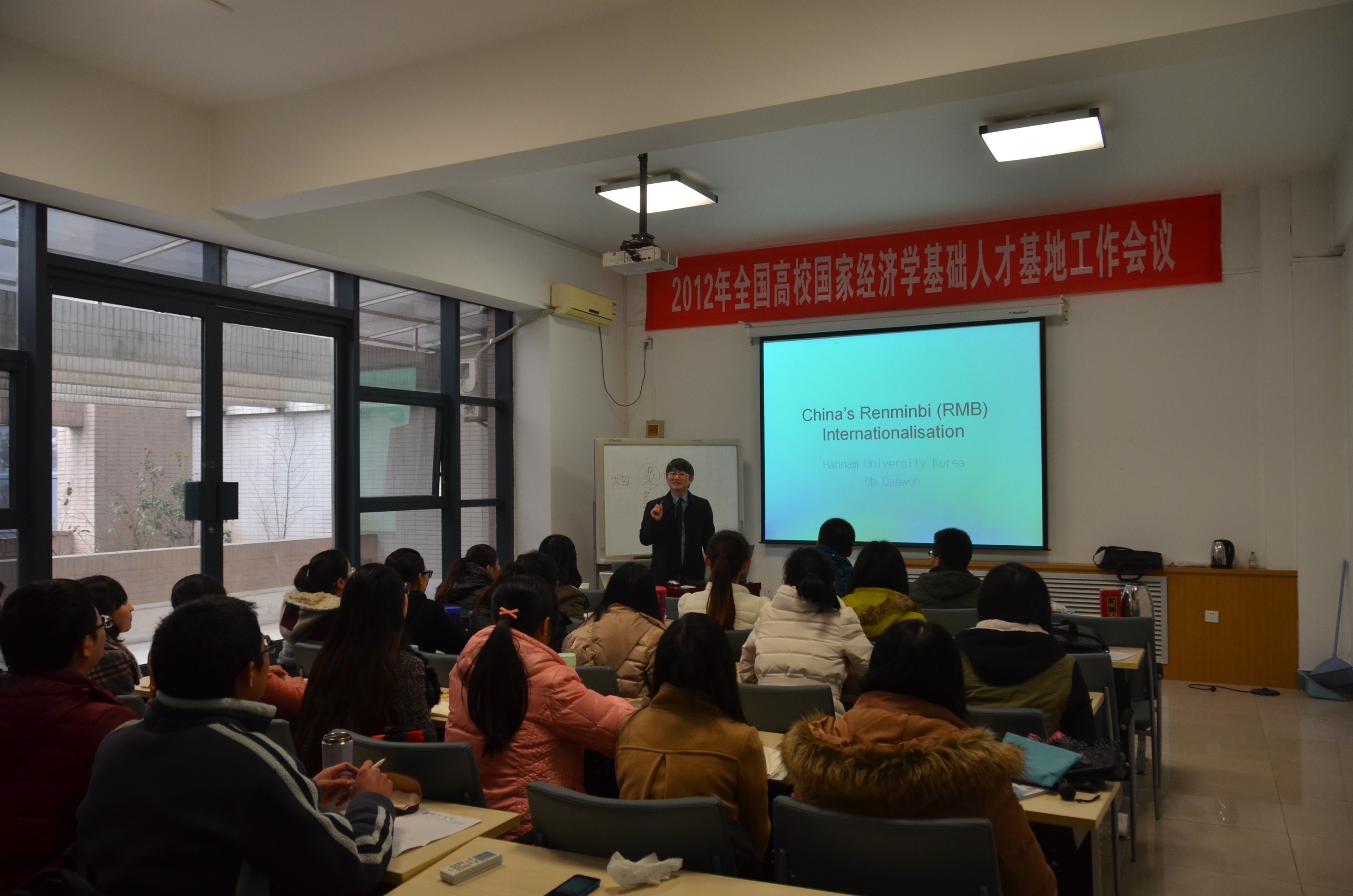 2014年2月28日,韩国韩南大学经商学院中国通商系教授吴垈原(Oh, Dae-Won)以《人民币国际化问题》为题,为我院金融系研究生做了专题报告。吴教授在中国人民大学获得博士学位,是韩国研究中国人民币国际化问题的专家。