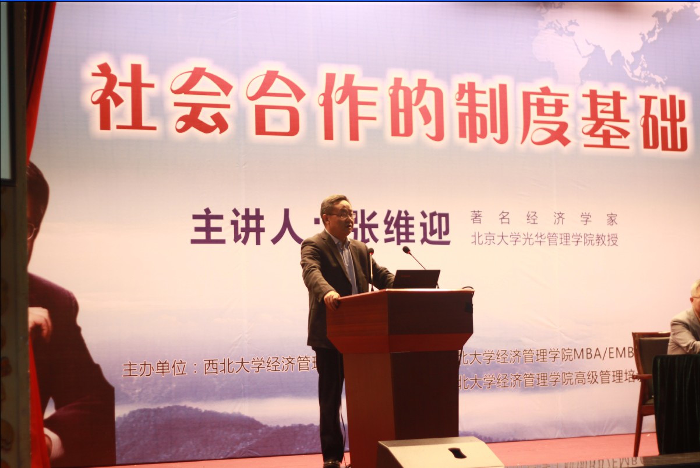 11月1日下午,经管学院“关中大讲堂”系列讲座之十四暨776net必赢官网第七届研究生学术月专家学术报告之八在太白校区大礼堂举行。我校杰出校友、著名经济学家、北京大学光华管理学院教授张维迎应邀作了了题为《人类合作的制度基础》的学术报告。我校部分教师、MBA和EMBA及科学学位研究生600余聆听了报告。报告会由776net必赢官网院长任保平教授主持。