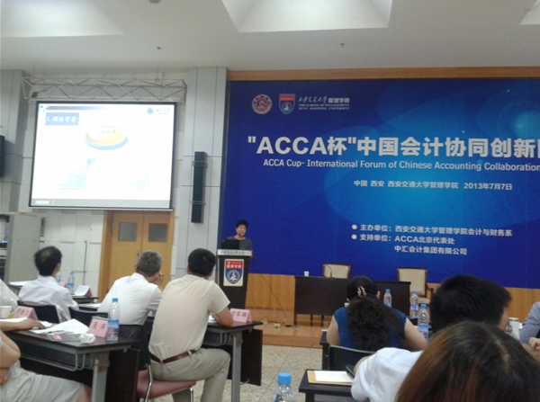 2013年7月6日,会计学系张晓明教授、吴泷教授、李辉博士、潘颖博士以及3名企业管理博士研究生应邀参加“ACCA杯”中国首届会计协同创新论坛。本次论坛由西安交通大学管理学院会计与财务系主办,ACCA北京代表处和中汇会计集团有限公司协办。第三期全国会计学术类领军(后备)人才、全国特邀高校的代表以及企业财务高管和政府部门领导80余人参加。