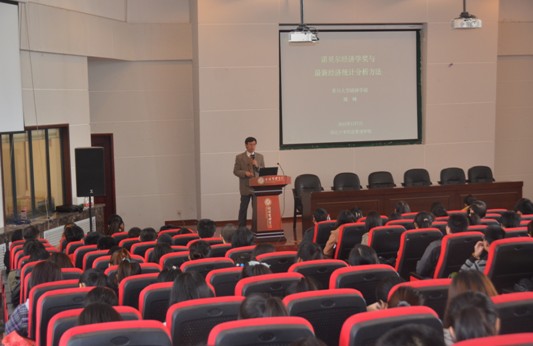 3月6日,日本香川大学经济学教授姚峰应邀来我院为师生作了题为《诺贝尔经济学奖与最新经济统计分析方法》的学术报告。学院部分青年教师和经济学系、数理经济与统计系学生200余人参加了活动。报告会由经济系主任何爱平教授主持。