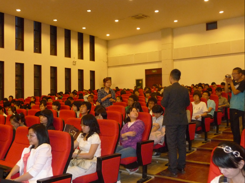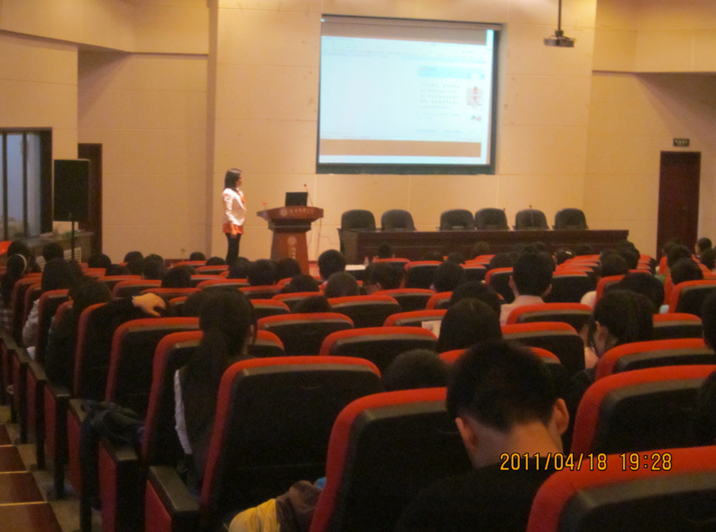 2011年4月18日晚7点,北京零点研究集团青年公益创业发展中心项目经理凌婧女士、周戴龙先生应邀在金海报告厅为我院学生做了题为《黑苹果青年计划》的大学生公益创业报告会。会议由我院公益创业协会会长杨飞同学主持,300余名学生参加。