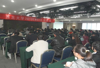 2010年10月31日上午8:30,西北大学EMBA第五期名家讲座在西部机场集团南山温泉酒店多功能报告厅举行。本次讲座邀请的嘉宾是中国社会科学研究院工业经济研究所所长金碚研究员,演讲主题为“中国产业发展的路径与前景——一个新的观察视角”。讲座由西北大学经管学院院长白永秀教授主持。