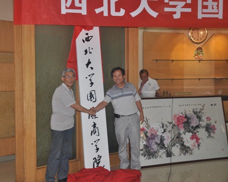 最后,由人事处令狐培选处长和国际商学院院长白永秀教授共同为西北大学国际商学院揭牌。