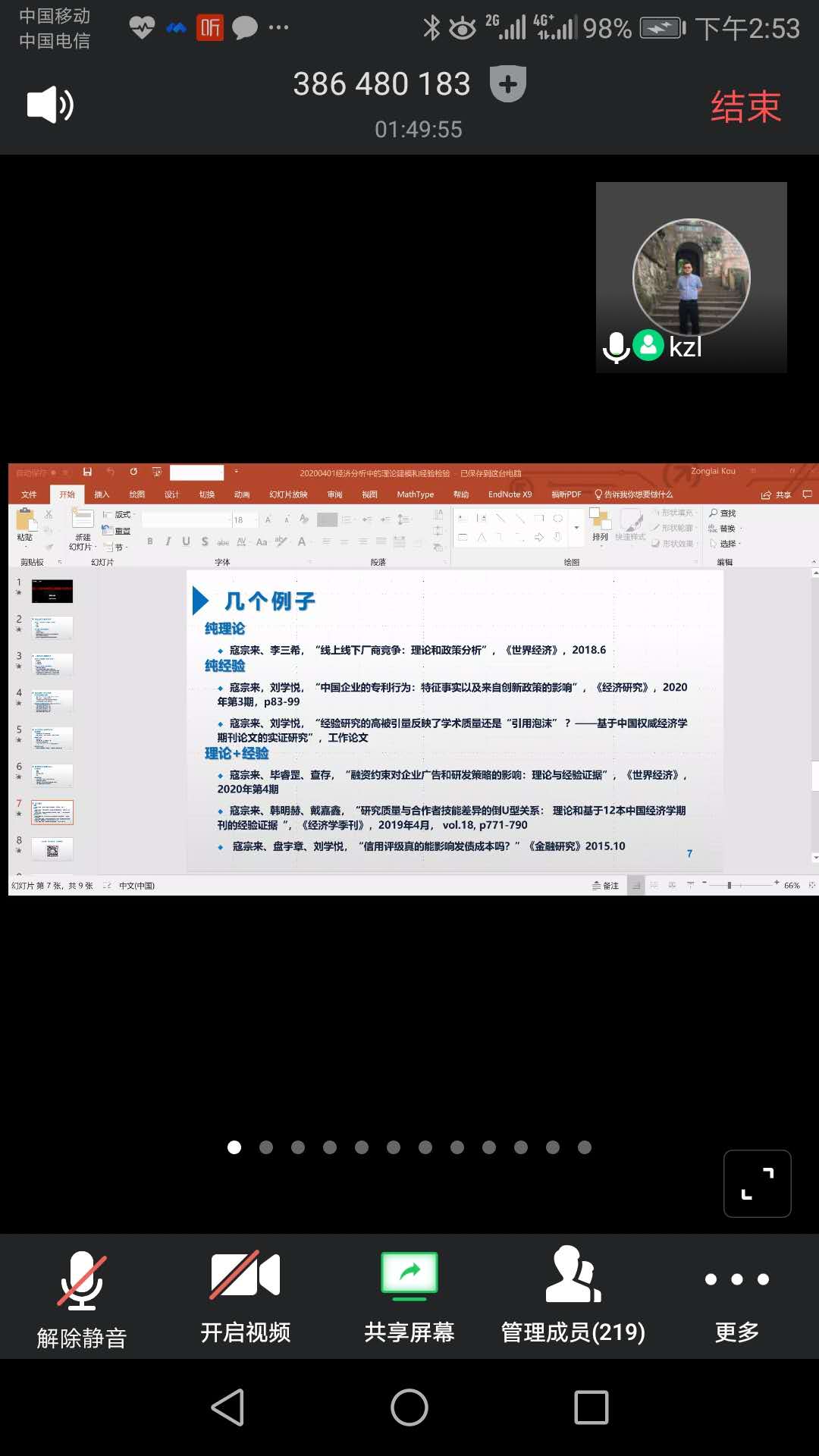 2020年4月1日14点,复旦大学经济学院寇宗来教授应邀在腾讯会议平台为776net必赢官网青年教师学术沙龙作题为《经济分析中的理论建模和经验检验》的线上学术报告。沙龙由吴振磊院长主持,共计219名青年教师和学生参会。报告中,寇宗来教授引用熊彼特《经济分析史》中“三驾马车”的论述和卡尔·波普关于科学本质的观点,引入对“好的经济分析”这一话题的探讨,并对如何做好经济分析进行了深入的讨论。