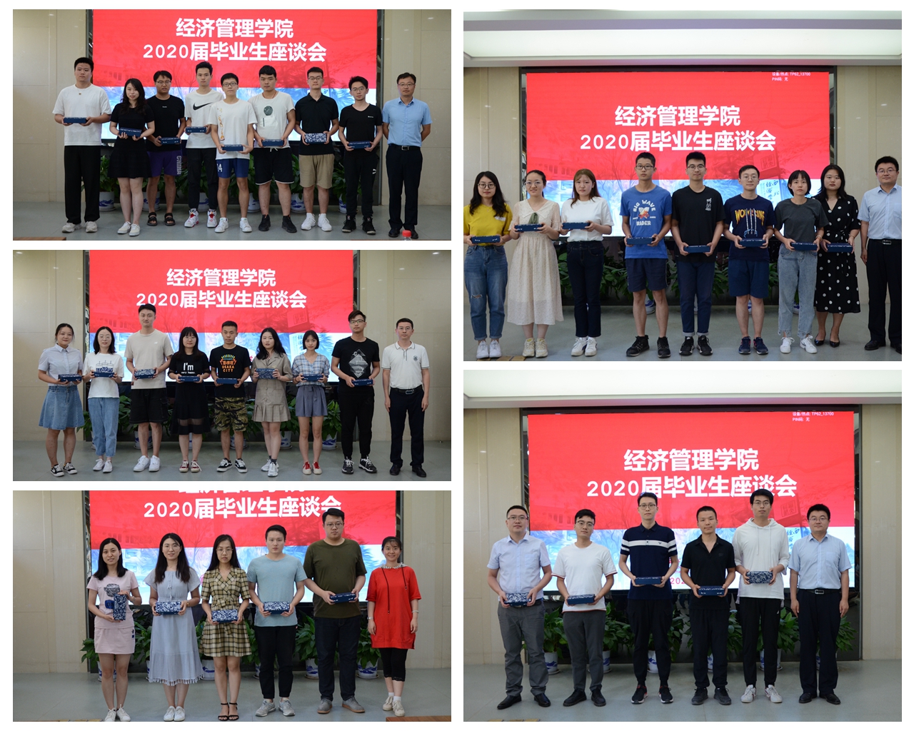 座谈会在学院精心制作的毕业视频中拉开帷幕,视频汇集了学院585名毕业生的照片、在校生活剪影和学院教师毕业寄语,情真意切的祝福是学院特意为毕业生送上的临别“礼物”。博士毕业生程锐、硕士毕业生龙汉、本科毕业生刘风起和魏晨作为毕业生代表分别发言,致敬师恩,回忆青春,分享了个人在学校求学的所得所获、求职的难忘经历和对未来的无限憧憬。34位与会的毕业生代表一一发言,畅谈职业选择和家国理想,并结合自身的学习生活经历,围绕学院的人才培养方案、课程体系建设、实践教学设计、第二课堂建设、科研能力培养、校友资源利用、国际交流合作等方面提出了自己的意见和建议。与会学院领导高度评价毕业生代表们的发言,表示学院将认真吸取同学们的意见和建议,不断推进学院改革步伐,竭尽所能满足学生需求,提高学院办学水平。李辉副院长寄语毕业生们要管理好身体,为未来的工作学习打下坚实基础;要管理好情绪,有理想信念、有建设性思维,有抗压能力;还要管理好关系,管理好风险。马莉莉副院长希望毕业生们要不断提升自身综合实力,通过奋斗努力实现选择自由、财务自由、思想自由、转换自由,要树立终身学习的理念,保持在既有环境下的判断力、行动力和执行力。座谈会上,与会老师为毕业生代表颁发了由我院教育部“长江学者”特聘教授、省级教学名师任保平教授手书的“潮涌海阔、千帆竞秀”黑檀木刻对书签,祝福毕业生们勇立时代潮头,秀出人生风采。