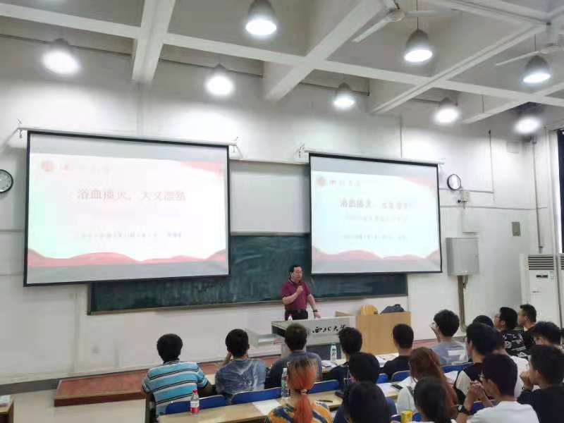 浴血播火,大义凛然--学生工作部(处)部(处)长董国强为776net必赢官网2020级经济类本科生讲授形势与政策课