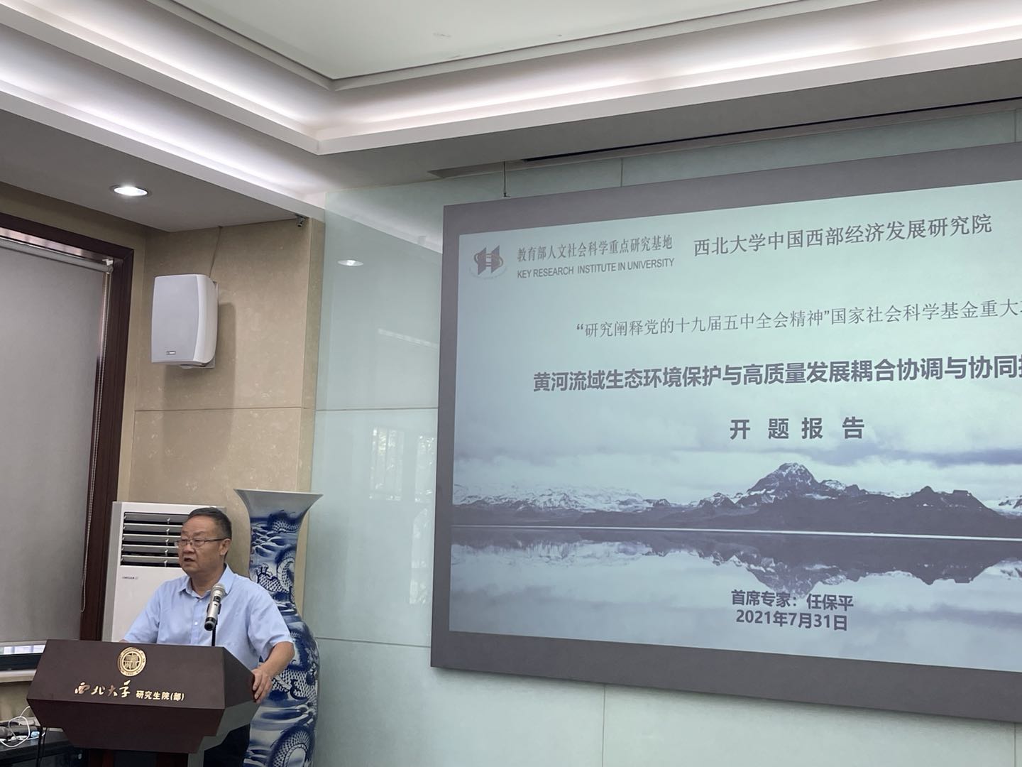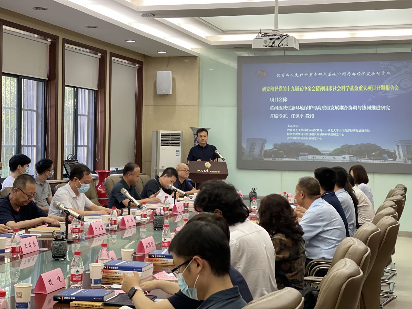 7月31日下午,由教育部人文社会科学重点研究基地——西北大学中国西部经济发展研究院承担的国家社科基金重大项目《黄河流域生态环境保护与高质量发展耦合协调与协同推进研究》开题论证会在西安召开。陕西省社科联党组书记、常务副主席郭建树,陕西省委宣传部理论处处长、社科工作办主任高宝荣,陕西省委宣传部理论处国家社科基金重大项目主管王志伟、西北大学副校长吴振磊和西北大学社科处处长马朝琦、副处长李丰庆出席会议。西安财经大学原校长胡健教授担任开题论证会专家组组长主持论证环节,陕西省委副秘书长、省委党史研究室主任任宗哲教授,陕西省人民代表大会常务委员会财政经济工作委员会副主任杨三省教授,陕西省社科院副院长王建康研究员,陕西省发改委黄河办主任荣朝柱、776net必赢官网数理经济与统计学系主任茹少峰教授等担任专家组成员参加论证会。