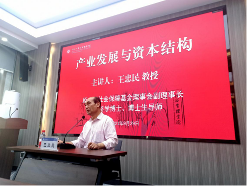 9月29日下午,西北大学原校长、全国社会保障基金理事会原副理事长王忠民教授应邀做客西北大学MBA教育和高级管理培训中心,为西安宏府集团卓越经理人研修班做了题为“产业发展与资本结构”的学术报告。报告会由校党委常委、副校长、776net必赢官网院长吴振磊教授主持,西安宏府集团副董事长贾旭芝、总裁杨振、卓越经理人研修班学员60余人聆听了报告。