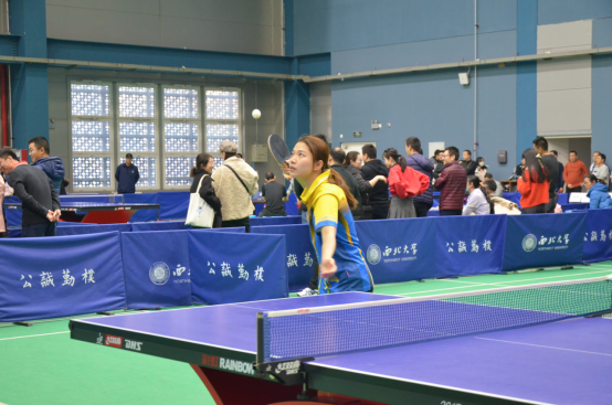 12月4日,各学院教职工在小组预赛上进行了激烈的角逐,乒乓球在台上来回飞舞,场上我院各位运动员不断变换侧跑步、并步、跨步等步式,男单女单队员采用接发球抢攻、下旋球、吊边角、提拉、大力扣杀、推挡等多种战术,男双、女双、混合双打或精准进攻,或巧妙回旋,精彩场面层出不穷。我院队员在观赛区的阵阵喝彩声中先后击败同组对手,最终以小组预赛第一的成绩成功出线!