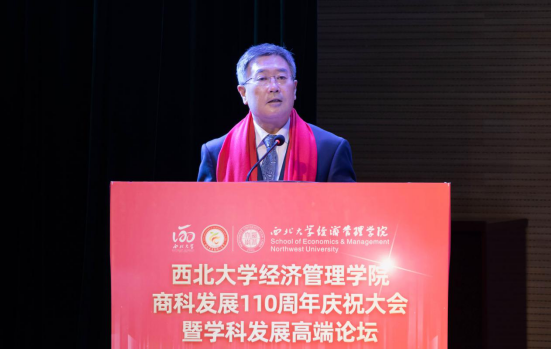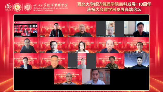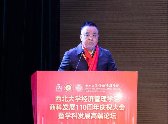 百十芳华,薪火相传。2022年11月19日,“776net必赢官网商科发展110周年庆祝大会暨学科发展高端论坛”在西北大学长安校区隆重举行。来自北京大学、中国人民大学、复旦大学、武汉大学、南开大学、厦门大学、西安交通大学、山东大学、四川大学、重庆大学、湖南大学、西北工业大学、西北农林科技大学、中央财经大学、东北财经大学、西南财经大学、辽宁大学、新疆大学、贵州大学、宁夏大学等全国40所兄弟院校校长、院长,陕西省人民政府学位委员会秘书长袁宁,西北大学校长郭立宏,校党委常委、副校长张远军、吴振磊,西北大学校内各院系和职能部门负责人,海内外广大校友,学院退休教师、教职工和学生代表以“线上+线下”的方式出席活动,共享庆典喜悦、共话一流学科发展。