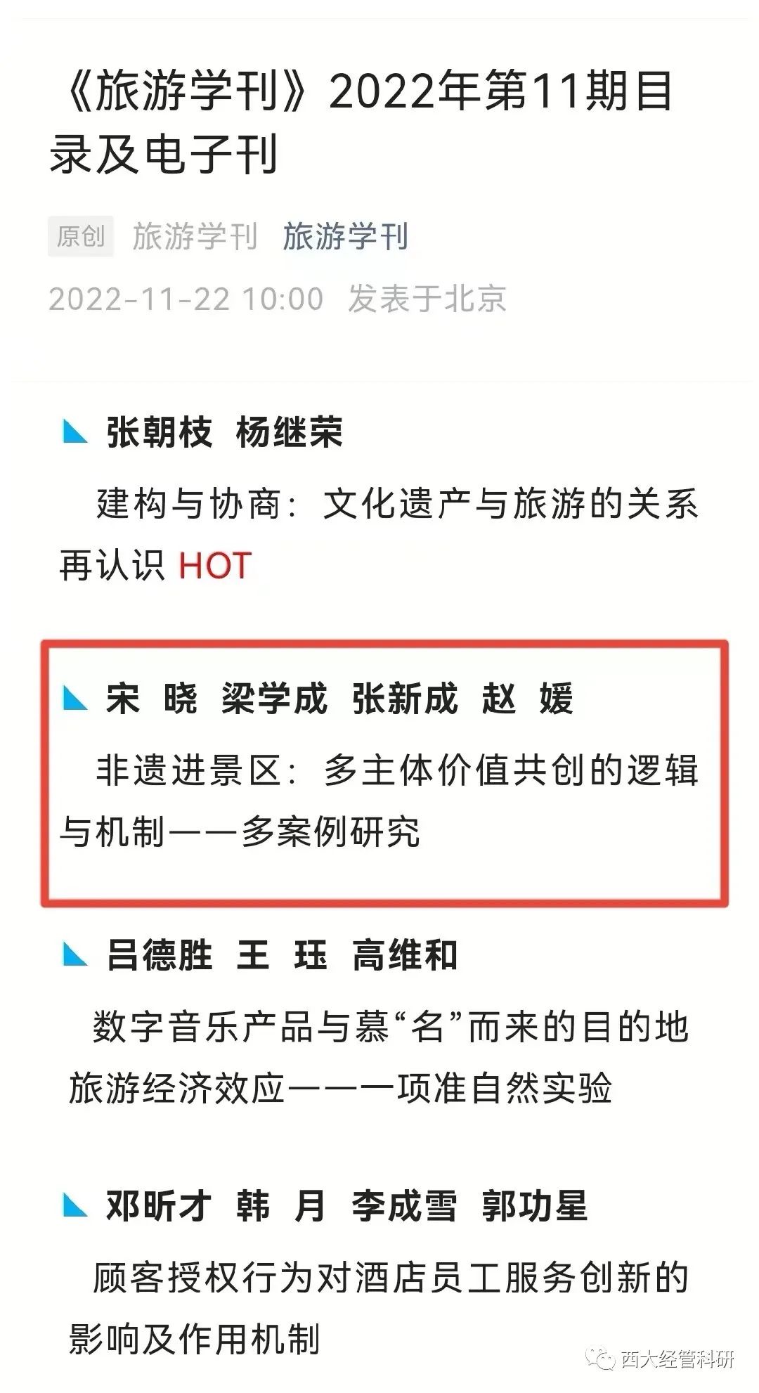 学院博士生宋晓和导师梁学成教授团队合作论文在权威期刊《旅游学刊》发表