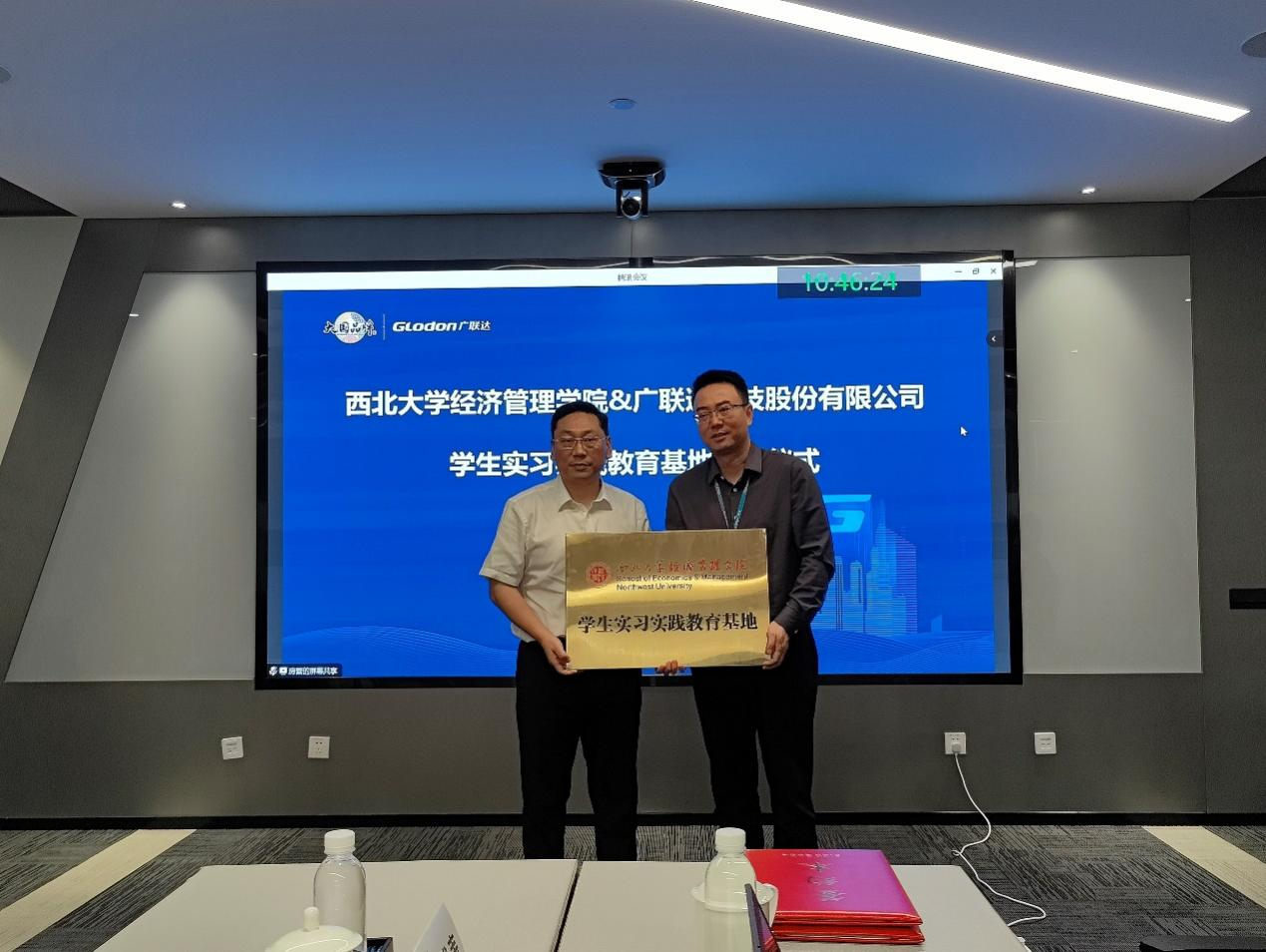 在座谈会上,广联达西安人力资源总监李超锋向信管师生介绍了广联达的企业文化、发展历程、核心价值和社会责任。他表示,广联达始终坚持以客户为中心,以创新为动力,以数据为驱动,以平台为载体,为建筑行业提供全面、高效、智能的数字化解决方案。他同时介绍了广联达在人才培养方面的理念和措施,欢迎信管专业的优秀学生加入广联达,成为数字建筑的推动者和实践者。我院杜勇书记对广联达表示感谢和敬意,认为广联达是建筑行业数字化建设的优秀代表同时是776net必赢官网的优质合作伙伴。李辉副院长介绍信管专业是培养具备经济管理理论、数字科学技术及应用能力、信息系统开发以及大数据管理的交叉学科专业。他表示,信管专业与广联达有着密切的联系和契合度,希望通过此次基地建立,加深双方的了解和合作,为信管专业的教学和人才培养提供更多的支持和帮助。我院杜勇书记和广联达的相关负责人李超锋共同为西北大学经管学院学生实习实践教育基地揭牌,标志着双方的合作迈上了一个新的台阶。