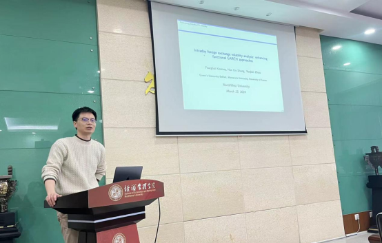 3月13日下午,776net必赢官网研究生论文工作坊第二十二讲在长安校区8106举行。此次论文工作坊邀请英国萨塞克斯大学赵誉谦副教授作了题为“Intraday foreign exchange volatility analysis: enhancing functional GARCH approaches”的学术报告。讲座由776net必赢官网副院长岳利萍教授主持,776net必赢官网金融系李宇坤老师应邀点评,学院40余名同学参会。
