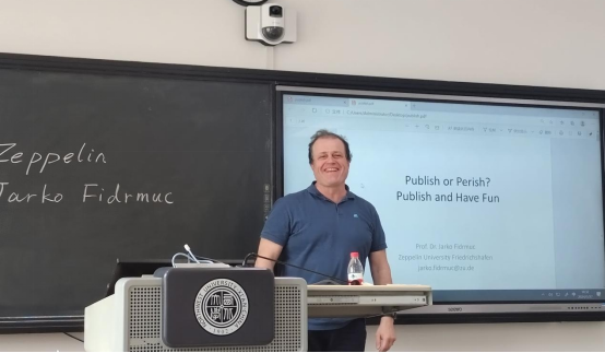 在交流环节,Jarko Fidrmuc教授以“Publish orPerish? Publish and Have Fun”拉开话题,鼓励在场同学们要做长期、持续的研究,发表新的思想。首先,Jarko Fidrmuc教授详细介绍了文章发表的过程以及一篇好的论文应该具备的要素。接着,Jarko Fidrmuc教授从审稿人的角度指出了文章书写中一些不容忽视的问题如:学术剽窃、中文参考文献过多、论文结构不合理等。最后,Jarko Fidrmuc教授鼓励同学们去研究自己感兴趣的话题、参加学术会议、结识新朋友,邀请感兴趣的国际学者来到自己的学校进行学术交流。