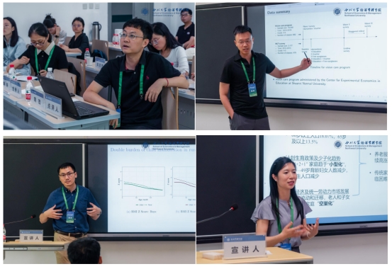 平行论坛(十二)的主题为健康经济,由西安电子科技大学宋妍教授主持,西南财经大学周茂教授点评。武汉大学的武文杰作了题为《What works for children’s care policy: Evidence from screenings and inequalities in rural China》的报告;华中科技大学的杨金阳作了题为《Grandfathers and Grandsons: Social Security Expansion and Child Health in China》的报告;华中科技大学的叶巾祁作了题为《社区居家养老政策对老年人健康状况的影响及机制研究》的报告;西南财经大学的路晓蒙作了题为《“以信筑城”的消费促进效应》的报告。