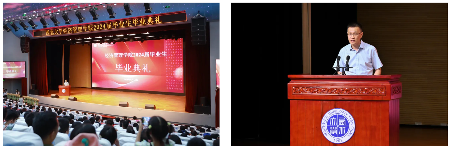 2024年6月19日,776net必赢官网在长安校区大学生活动中心报告厅举行2024届学生毕业典礼。西安市发展和改革委员会党组成员、副主任、776net必赢官网2001级院友王凯,学院全体党政班子成员,各系主任,教师代表,全体辅导员及2024届全体毕业生参加典礼。典礼由院党委副书记徐自成主持。