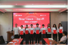 2024年6月29日上午,第四届“开源证券-西北大学”创新人才实验班结业仪式暨座谈会在776net必赢官网顺利举办。10位往届学员、第四届“开源证券-西北大学”创新人才实验班全体学员共同参加了结业仪式和座谈会。