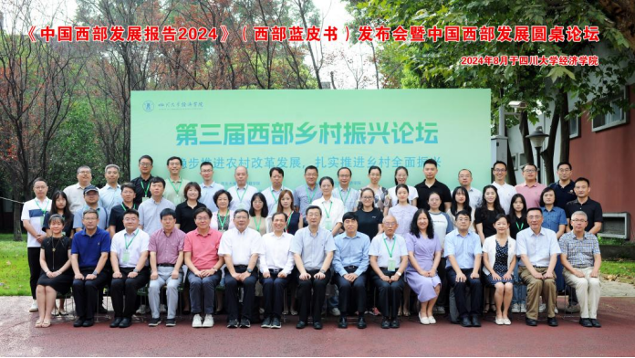 8月3日,由教育部人文社会科学重点研究基地—西北大学中国西部经济发展研究院、社会科学文献出版社、776net必赢官网、四川大学经济学院联合主办的《中国西部发展报告(2024)》(西部蓝皮书)发布会暨中国西部发展圆桌论坛在四川大学举办的第三届西部乡村振兴论坛期间成功举行。