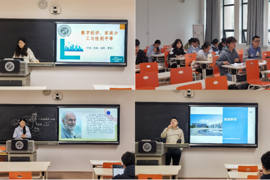 “基地学术课堂”的第一单元为文献研习,所学文献是《数字经济、家庭分工与性别平等》,来自《经济学(季刊)》2023年第1期。2022级经济学基地班本科生李晓红从研究背景、相关理论、研究方法和实证结果四个角度讲解了这篇文章。2023级经济学基地班本科生杨雅歆从研究思路和现实意义两个角度点评了这篇文章。