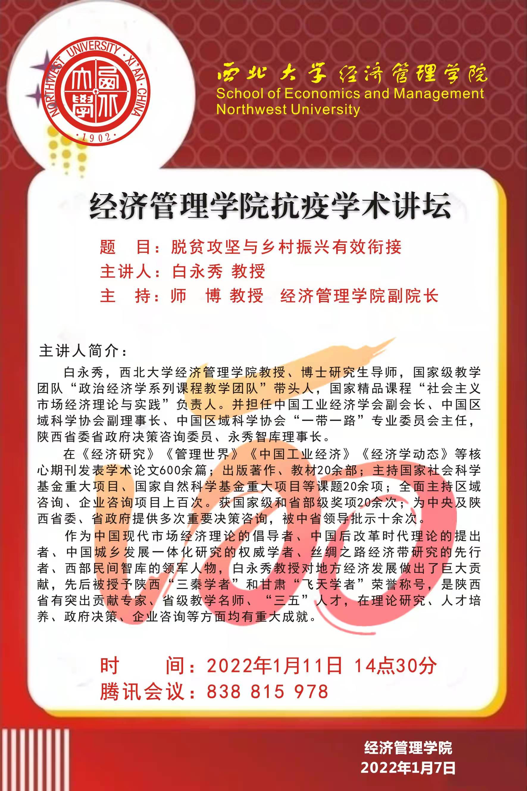 776net必赢官网抗疫学术讲坛--脱贫攻坚与乡村振兴有效衔接