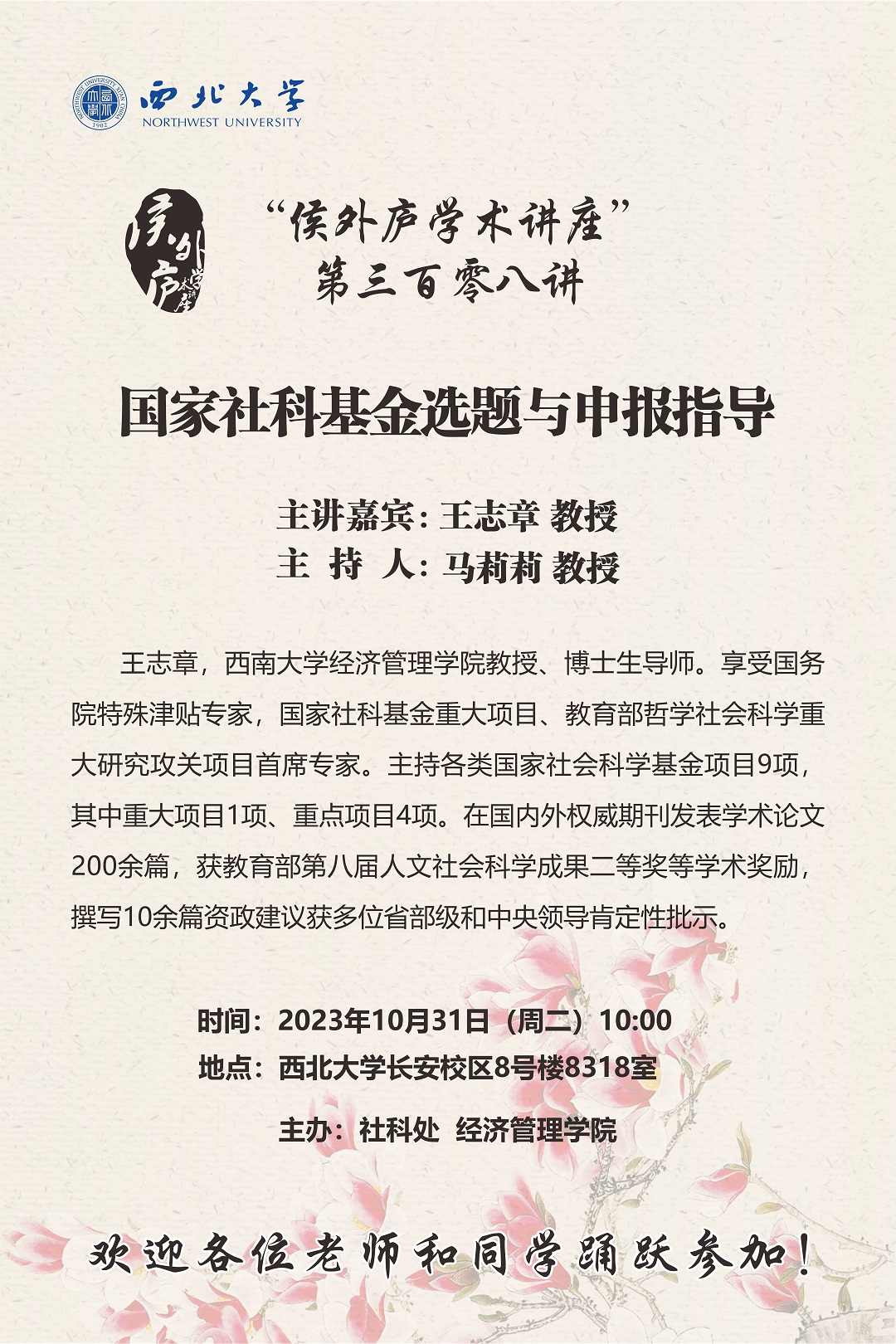 “侯外庐学术讲座” 第三百零八讲国家社科基金选题与申报指导