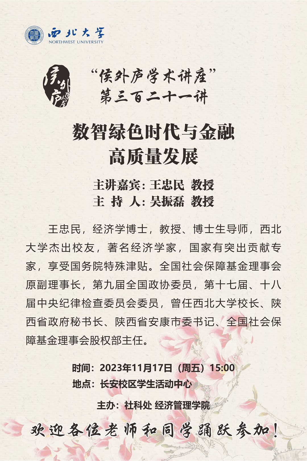 “侯外庐学术讲座” 第三百二十一讲---数智绿色时代与金融高质量发展