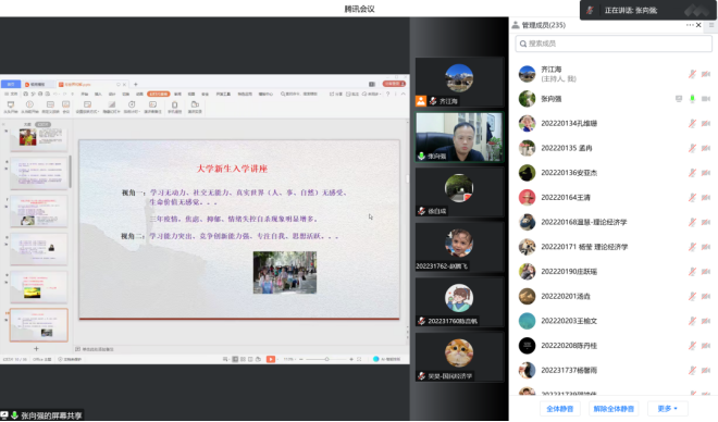 张老师用朴实的语言结合自己丰富的案例经验,深入浅出的为同学们讲述了突发疫情所带来的问题,以及用幽默的语言告诉大家如何进行自我调节。讲座最后,张老师与同学们亲切互动,耐心解答大家提出的问题和面临的困惑,鼓励同学们保持乐观的情绪和良好的心境,正确认识自身优缺点并学会自我调节和自我疏导。他还建议同学们“要读很多书,通过别人的故事去感悟你自己”;“要去感受这个世界,与社会有深深的连接”;面对困难时,“做当下可以做的事就好”。