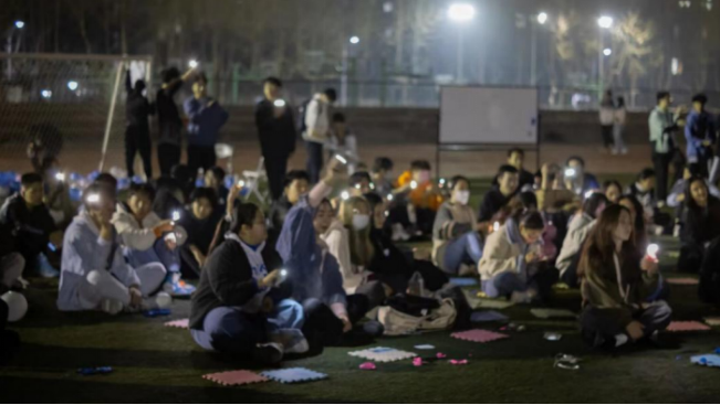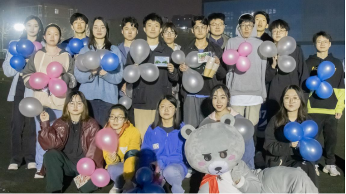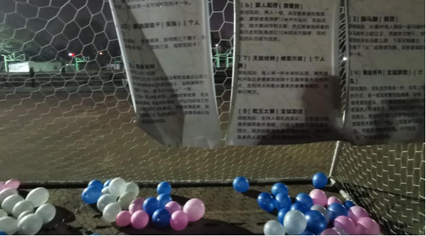 活动开始的第一个环节是“踩气球”。心协成员将事先准备好的蓝白粉三色气球散发给同学并按照颜色分为三组,同学们需要相互踩压对方脚上的气球,最后剩余气球最多组获胜并上台领取奖励。活动过程中,同学们你追我赶,欢呼雀跃,现场氛围十分活跃,也达到了热身的效果。