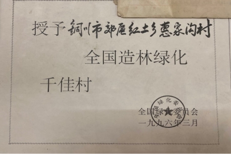 在郭秀明的带领下,惠家沟村五年共造林1750亩,全村宜林荒山绿化率达到100%,1996年3月惠家沟被全国绿化委命名为 “全国造林绿化千佳村”,郭秀明也被评为“三北防护林体系二期工程先进个人”。中央领导也对郭秀明同志的事迹作了重要批示,对郭秀明同志给予了高度评价。