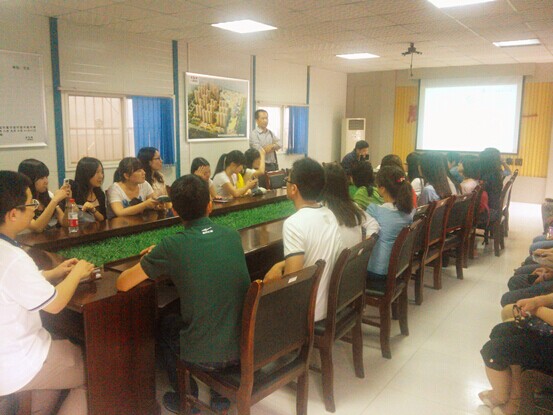 同学们首先在项目部会议室认真听取了项目部工作人员有关项目概况,项目理念,项目目标,前期准备,项目进度,财务预算,质量管理,安全管理,日常管理及项目所获荣誉方面的详细介绍。同学们做了相关记录并针对工作人员的介绍虚心提问。