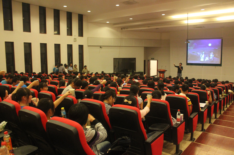 中秋节当晚,军训新生还在金海恒业报告厅开展了形式多样、丰富多彩的中秋联欢活动,同学们踊跃上台,献歌献舞,各种精彩的节目将活动不断推向高潮,现场成为了欢乐的海洋。