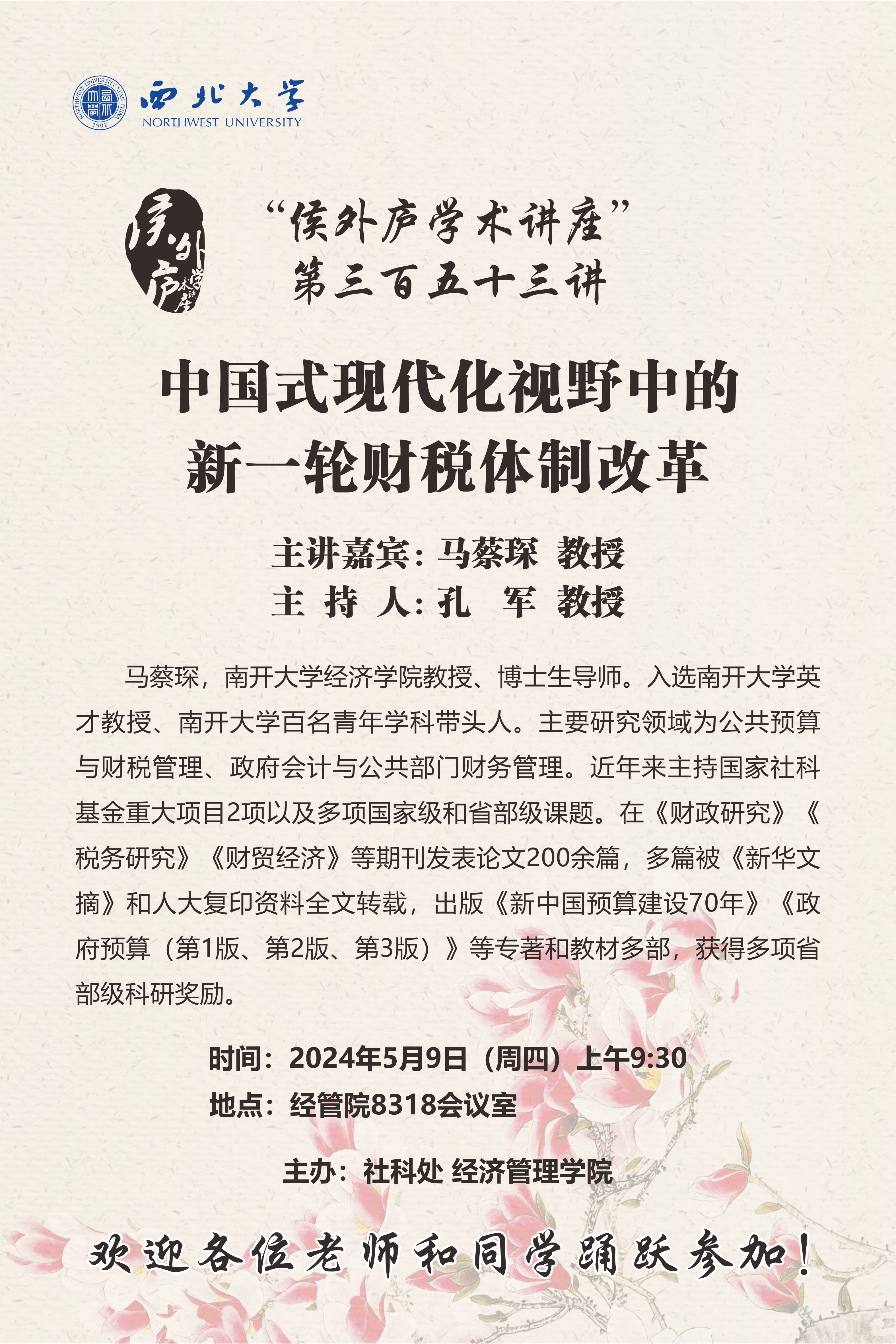 “侯外庐学术讲座”第三百五十三讲---中国式现代化视野中的新一轮财税体制改革